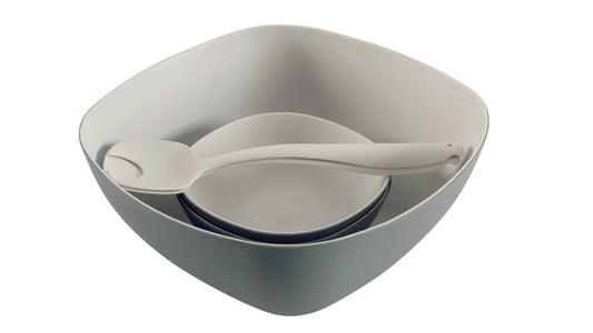 Salotų rinkinys Outwell Gala 2 asmenims, dubuo, 2 indai, pilkos ir smėlio spalvos salotų serveriai
