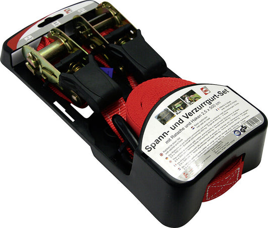 Bungee & blakstienos. dirželių rinkinys IWH su reketu ir kabliu 2,5 x 500 cm, kiekis: 2 vnt. plk. raudona