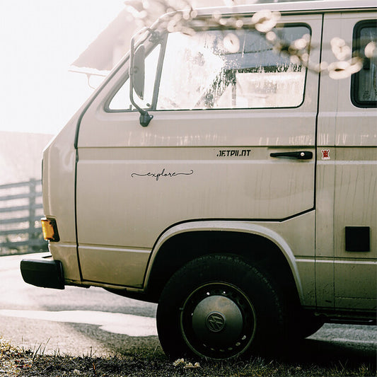 Automobilio lipdukas Adventure Shop Explore juodas