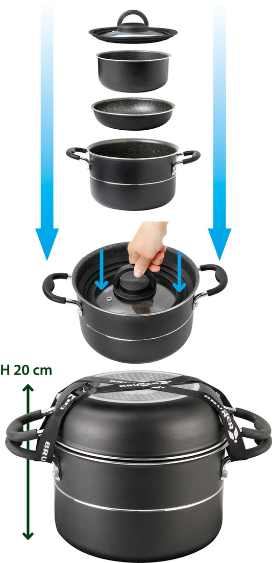 Kepimo rinkinys ROBENS Frontier Pro M 3 vnt keptuvė 19,5 cm 2 keptuvės su 1,4 l ir 1,6 l įsk. krepšys, juoda spalva