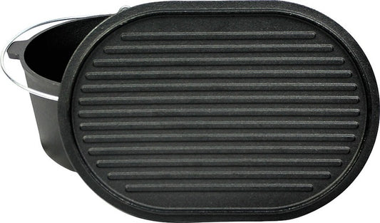 Olandiška orkaitė VALHAL OUTDOOR ketaus ovalus, plokščias dugnas, grilio rašto dangtis, 9 l