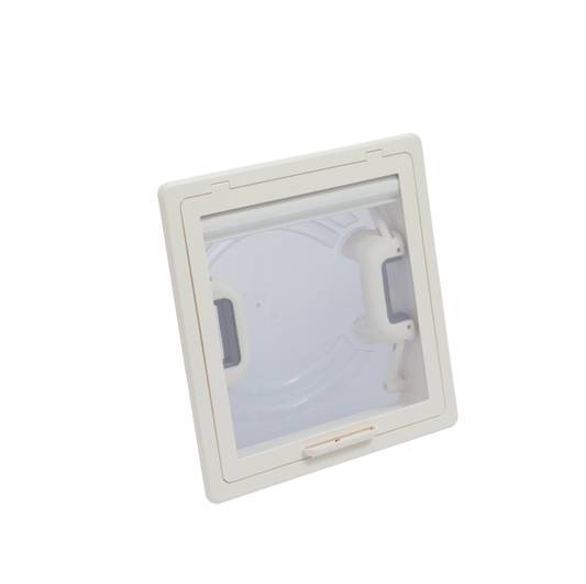 Vision Vent S eco skaidrus stiklas, rėmas baltas su tinkleliu ir roletu, rūkytas stiklas, skersmuo 24-46cm